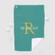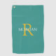 DIY Monogram & Name, Gold & White Text, Teal Golf Towel