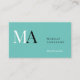 An elegant design that is sure to get their attention. Front has teal background, back has white background with white and black initials and text. Works well for many professions: Interior Designers, Consultants, Hair and Makeup Artists, Corporate Professionals, Realtors, Sales Associates, Estate Planners and more. DIY Monogram, name, occupation, address, phone/cell, website and email.