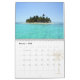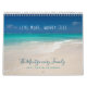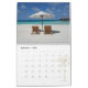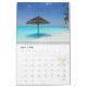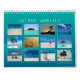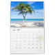 Paradise on a calendar! Add your own special touch to this stylish custom year calendar by replacing the twelve tropical beach photos with your favourites! This two page photo calendar template includes all twelve of your photos on the back for easy reference; all are framed in turquoise and are featured over an artistic wave background. Easily personalise the calendar title (which reads: "Live more, worry less" ), name and year using the provided templates. An artistic tropical palm tree with coconuts adorns each monthly page.