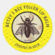Vintage illustration of a queen black bee upon a pastel flower print with the word Queen underneath. Black inner rim and black crosshatch with crown design over a yellow background creates a wide area for customisable text.