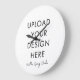 Add your personal touch to any room with this modern wall clock. Featuring a clean white background and bold black serif text that says "Upload Your Design Here," this clock is the perfect canvas for your creativity. Showcase your favourite photos, artwork, or a special message to create a truly unique timepiece. It's an ideal way to express your style and keep track of time with a personal flair. This design is perfect for adding a custom accent to your home or office decor.