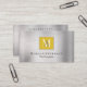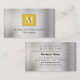 An elegant design that is sure to get their attention. Front has white and grey initials in gold box with brushed silver background and name and title/occupation in black. Back has black text in grey box with brushed silver background. Works well for many professions: Interior Designers, Consultants, Hair and Makeup Artists, Corporate Professionals, Realtors, Sales Associates, Estate Planners and more. DIY Monogram, name, occupation, address, phone/cell, website and email.