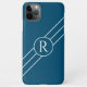 DIY White Monogram Circle Diagonal Lines OceanBlue iPhone Case