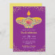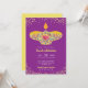 Invite your loved ones to celebrate the festival of lights with this colourful Diwali invitation. The brightly coloured invite features a decorated diya with purple, teal, and red designs drawn on the yellow lamp. Gold confetti frames the top and bottom of the invitation. Easily add your party details to the editable template. The purple background colour on the front and yellow background colour on the back can be customised to any colour you desire.