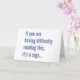 I was so glad to find this card - it was exactly right for the occasion and right for the person I sent it to ! Funny and clever design by Le Grand Art. Printing and overall quality of the card was excellent. A quality product