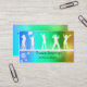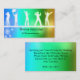 Custom colourful business cards perfect for DJs, musicians, and clubs. With a gradient background in blue, green, and gold, the white silhouettes of dancers stand out nicely. Customise the text on front and back to suit your needs. Change font style, colour, and sizes, even add more text if you want.