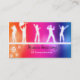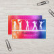 Custom colourful business cards perfect for DJs, musicians, and clubs. With a gradient background in yellow, orange, pink, purple, and blue, the white silhouettes of dancers stand out nicely. Customise the text on front and back to suit your needs. Change font style, colour, and sizes, even add more text if you want.