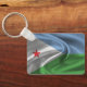 Keychain with the flag of Djibouti in wavy fabric style design. This design features the Djiboutian flag colours and design with a beautiful waving material textured effect. This flag design is a great way to show you are proud to be from Djibouti.