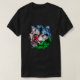 I give wanted to give this a 4 instead of a 5 because these Basic DARK T0shirts run unexpectedly SLIM or Narrow. Which is great if you do not have a potbelly, but I have a paunch. It isn't the shirt's fault that I've got a beer belly. The design and shirt itself is a quality cotton shirt. The color is more of a deep purple, but still a very pretty color. The Basic DARK T-shirts run a bit SLIMMER than the Basic Ts. The neck is a fraction narrower (or seems to be narrower) also. I'm a paunchy middle-aged woman and my neck is 12 inches (31cm) thick and the neckline fell about the same as in the photo of the man, and I had the desire to tug it a bit. So if you're a thick necked man or like loose shirts, be aware these are slimmer shirts. Once I get rid of my lockdown paunch it'll look great. The shirt washed well in cold water with no apparent bleeding. We don't have a dryer, so it hung dry. Did not shrink. Love the colors and the design. The design looks smaller on my shirt than it does on the model on-line. But still, it looks good on the shirt. The printing looks as it does on the model, just the size seems fractionally smaller. Washed garment in cold water, hung dry and design appeared unaffected.