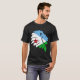 I give wanted to give this a 4 instead of a 5 because these Basic DARK T0shirts run unexpectedly SLIM or Narrow. Which is great if you do not have a potbelly, but I have a paunch. It isn't the shirt's fault that I've got a beer belly. The design and shirt itself is a quality cotton shirt. The color is more of a deep purple, but still a very pretty color. The Basic DARK T-shirts run a bit SLIMMER than the Basic Ts. The neck is a fraction narrower (or seems to be narrower) also. I'm a paunchy middle-aged woman and my neck is 12 inches (31cm) thick and the neckline fell about the same as in the photo of the man, and I had the desire to tug it a bit. So if you're a thick necked man or like loose shirts, be aware these are slimmer shirts. Once I get rid of my lockdown paunch it'll look great. The shirt washed well in cold water with no apparent bleeding. We don't have a dryer, so it hung dry. Did not shrink. Love the colors and the design. The design looks smaller on my shirt than it does on the model on-line. But still, it looks good on the shirt. The printing looks as it does on the model, just the size seems fractionally smaller. Washed garment in cold water, hung dry and design appeared unaffected.