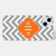 Dark Grey and White Large Chevron ZigZag Pattern, Pumpkin Orange 3 Initial Monogram Label