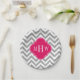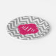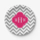 Dk Grey Lg Chevron Raspberry Quatrefoil 3 Monogram Paper Plate