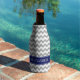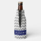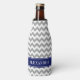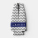 Dk Grey White Chevron Navy Name Monogram Bottle Cooler