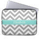 Dk Grey White LG Chevron Turquoise Name Monogram Laptop Sleeve