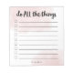 This simple and modern to-do list features trendy handwritten script typography that says "do all the things." A cute black and white checklist you'll love showing off as you check each task off your list! Stylish blush pink watercolor splashes also decorate the notepad.