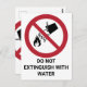 Do Not Extinguish With Water, Prohibition Sign Postcard
