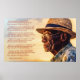 Watercolor painting of a dignified older black man set against a golden sunset overlaid with a famous poem by Dylan Marlais Thomas.