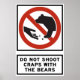 International style road and highway sign warning not to shoot craps with the bears. Based on the real sign meaning "Do not feed the bears," which features a hand throwing little squares, it seemed natural to draw in some pips and forbid gambling with the animals.