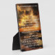 This tabletop plaque has a beautiful scene of the ocean's waves approaching the shore, a bird flying in a spectacular orange sky as the sun sets low behind the clouds, and a sympathy poem to help comfort those who have lost a loved one (person or pet): Do not stand at my grave and weep I am not there; I do not sleep. I am a thousand winds that blow, I am the diamond glints on snow, I am the sunlight on ripened grain, I am the gentle autumn rain. When you awaken in the morning's hush, I am the swift uplifting rush Of quiet birds in circled flight. I am the soft stars that shine at night. Do not stand at my grave and cry, I am not there; I did not die. This poem, written by Mary Elizabeth Frye, is a common reading at funerals.