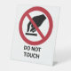 Our do not touch prohibition signs are designed to enhance safety and notify of dangers in various settings. Our ISO 7010 prohibition signs always include a red circle and a red diagonal on a white background with a black standardised pictogram. They are the "must not do" signs. Well-known signs include the "no-smoking" sign, "no photography," "not drinking water," and the "no open flame" sign. These prohibition signs are an essential tool for identifying and cautioning individuals, reducing risks, and promoting preventative measures. With its ISO 7010 compliance, this do not touch prohibition sign meets international standards for hazard communication. It features a bold and eye-catching design, making it easily noticeable in any environment where hazards are present. The prohibition label serves as a visual reminder of the danger. Its clear and concise message helps raise awareness among employees, customers, or visitors, ensuring they exercise caution and take necessary precautions. By prominently displaying this warning on containers, equipment, or areas containing these materials, you can effectively communicate the potential risks and encourage responsible handling and storage practices. This proactive approach significantly minimises the likelihood of accidents, protecting lives, property, and the environment. Trust our waterproof adhesive labels and signs to enhance safety protocols and maintain compliance with industry regulations. You can customise the text on our labels to indicate the precise nature of the hazard or to translate it into other languages.