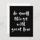 Do small things with great love black postcard