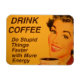 Woman with Bright red lips holds a cup of coffee. " Do Stupid Things Faster and with More Energy."