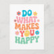 Surround yourself with joy and positivity with this delightful "Do What Makes You Happy" postcard, accented by cute, colourful flowers. This cheerful, motivational artwork is a gentle reminder to embrace what brings you joy, chase your dreams, and prioritise self-care. A great gift for mental health awareness, personal growth enthusiasts, or anyone needing a little daily inspiration.