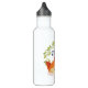 A water bottle with a cartoon drawing of a cute orange fox sleeping peacefully with little pink and red hearts hovering around. Text says: Do what makes you happy".A green foliage wreath behind.