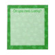 5.5” x 6” customisable notepad with an image of shimmering green shamrocks on green and a white transparent writing space. See matching notebook. See the entire St. Patrick’s Day Notepad collection under the OFFICE category in the HOLIDAYS section.