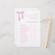 With delicate pink watercolor bows adding an air of grace and charm, this game invites guests to recall special details—her favourite movie, where she met her fiancé, or the little quirks that make her unique. Whether played over brunch with mimosas or as a lighthearted competition during gift-opening, it’s a beautiful way to reflect on the journey that led to this special moment.