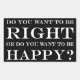 Do You Want To Be Right Or Do You Want To Be Happy? design on black background.