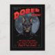 Poster/cover art for the newes costumed crime-fighter, Dober Man. The menacing avenger darkly rendered against a full moon, with titles. Posters, t-shirts, cards, gifts.
