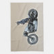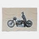 A Doberman Pinscher sitting on a bobber motorcycle. T-shirts, sweats, novelty gift swag.