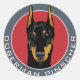 Doberman head badge, in black with red and grey accents. Available as a black head in blue-green and lavendar as well as Red, Blue, and Fawn/Isabella Doberman colours