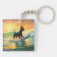 Doberman Beach Surfing Painting Key Ring