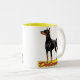 The Doberman is sleek, powerful and alert in this design with breed name. Black Dobe on one side and red Dobe on the other.