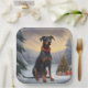 Amidst a winter wonderland, a playful dog enjoys a snowy Christmas morning, leaving adorable paw prints in the glistening snow. Their joy and curiosity add warmth to the enchanting holiday scene, making it truly magical.