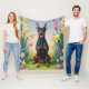 Doberman Dog Spring Flowers Painting Fleece Blanket