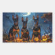 Unleash the spooky spirit with this eerie Halloween design featuring a pack of dogs under a dark, moonlit sky, surrounded by flying bats and glowing pumpkins. Perfect for those who love a touch of frightful fun with their furry friends!