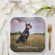 These birthday paper plates feature a handsome Doberman pinscher.