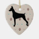 For dog parents, we love to include our furry kids in the holiday celebration or family event. This ornament with a silhouette of a Doberman Pinscher is the perfect way to commemorate your beloved dog. Customise the back with your dog's name, titles, or your favourite saying. With a pattern of tan paw prints and blue dots on a beige background, this ornament is sure to please any dog lover or pet owner.