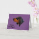 Doberman Pinscher Dog Birthday card on bold purple background. Card reads 'Happy Birthday!' on the front and 'Many Happy Returns' inside.