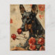 Capture the essence of nostalgia with this vintage postcard featuring a sleek and regal Doberman surrounded by delicate roses and hearts. The sepia-toned image exudes timeless warmth, evoking a sense of love and companionship. The Doberman's strong and protective demeanour is beautifully complemented by the soft floral backdrop, making it a heartwarming keepsake for dog lovers and vintage enthusiasts alike.
