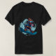 I give wanted to give this a 4 instead of a 5 because these Basic DARK T0shirts run unexpectedly SLIM or Narrow. Which is great if you do not have a potbelly, but I have a paunch. It isn't the shirt's fault that I've got a beer belly. The design and shirt itself is a quality cotton shirt. The color is more of a deep purple, but still a very pretty color. The Basic DARK T-shirts run a bit SLIMMER than the Basic Ts. The neck is a fraction narrower (or seems to be narrower) also. I'm a paunchy middle-aged woman and my neck is 12 inches (31cm) thick and the neckline fell about the same as in the photo of the man, and I had the desire to tug it a bit. So if you're a thick necked man or like loose shirts, be aware these are slimmer shirts. Once I get rid of my lockdown paunch it'll look great. The shirt washed well in cold water with no apparent bleeding. We don't have a dryer, so it hung dry. Did not shrink. Love the colors and the design. The design looks smaller on my shirt than it does on the model on-line. But still, it looks good on the shirt. The printing looks as it does on the model, just the size seems fractionally smaller. Washed garment in cold water, hung dry and design appeared unaffected.