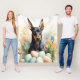 Doberman with Easter Eggs Fleece Blanket