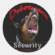 A threatening black Dobermann Pinscher with the text "Dobermann Security" on a sticker. Put them on your car or personal items to keep people away!