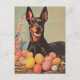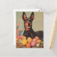 Celebrate Easter with the elegant and loyal Dobermann in this vintage-style postcard. Featuring the iconic dog surrounded by colourful Easter eggs, blooming spring flowers, and festive seasonal accents, this design is perfect for Dobermann enthusiasts, collectors, and fans of nostalgic holiday art. A sophisticated keepsake to share the joy of Easter.