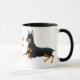 Original fine art design of Doberman Pinscher dogs by designer Carolyn McFann of Two Purring Cats Studio on a customisable mug for Doberman fans.