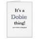 Its a Dobie thing and only you understand. Put this "It's a Dobie thing, you wouldn't understand" design on a t-shirt, mug, sticker, card, button, poster and more.