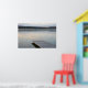 Wooden dock on calm misty morning lake poster